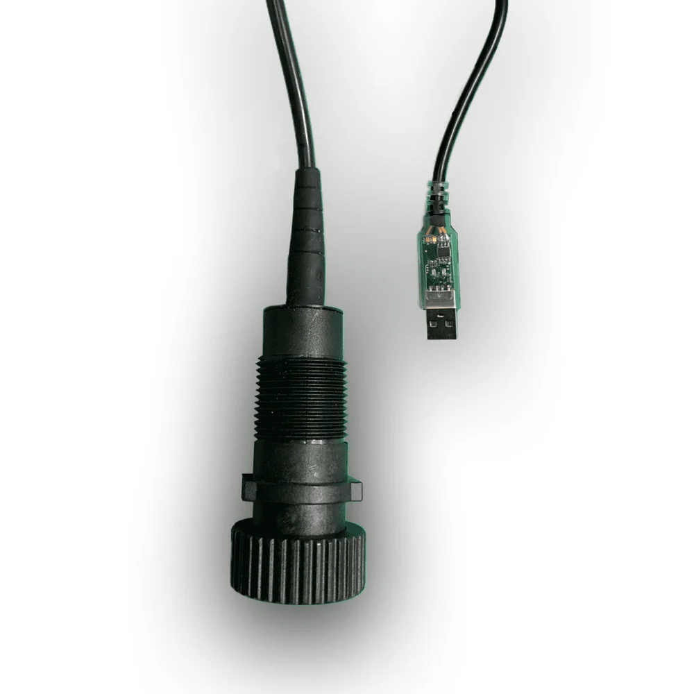 The Calibration Adapter (PN# S857) is used to calibrate modbus sensors. It threads on to the back of the smart sensor and it connects to a computer via a USB interface.